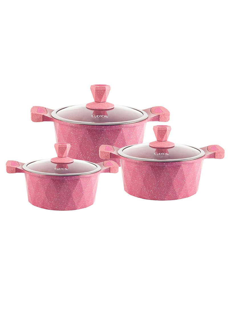 طقم طاجن رخامي من الألومنيوم 6 قطع 20/24/28 سم - وردي